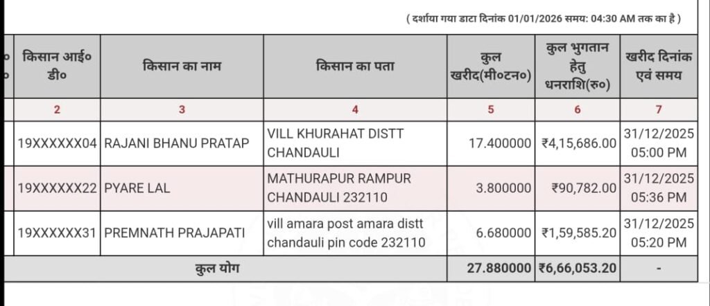 Chandauli news : चंदौली धान का कटोरा कहा जाता है। धान की बालियां ज़ब पक कर तैयार होती है तो इसके सुनहरे रंग जैसे दूर से खेतों में सोना होने का अहसास दिलाती है। लेकिन किसानों के लिए यह धान की भूसी अधिकारियों के लिए सोना हो गयी है। स्थिति यह है कमीशनखोर अधिकारियों के बरधहस्त पर बंद केंद्र पर भी खरीद हो रही है। जिसका लाभ किसानों की बजाय भ्रष्ट अधिकारियों को हो रहा है।