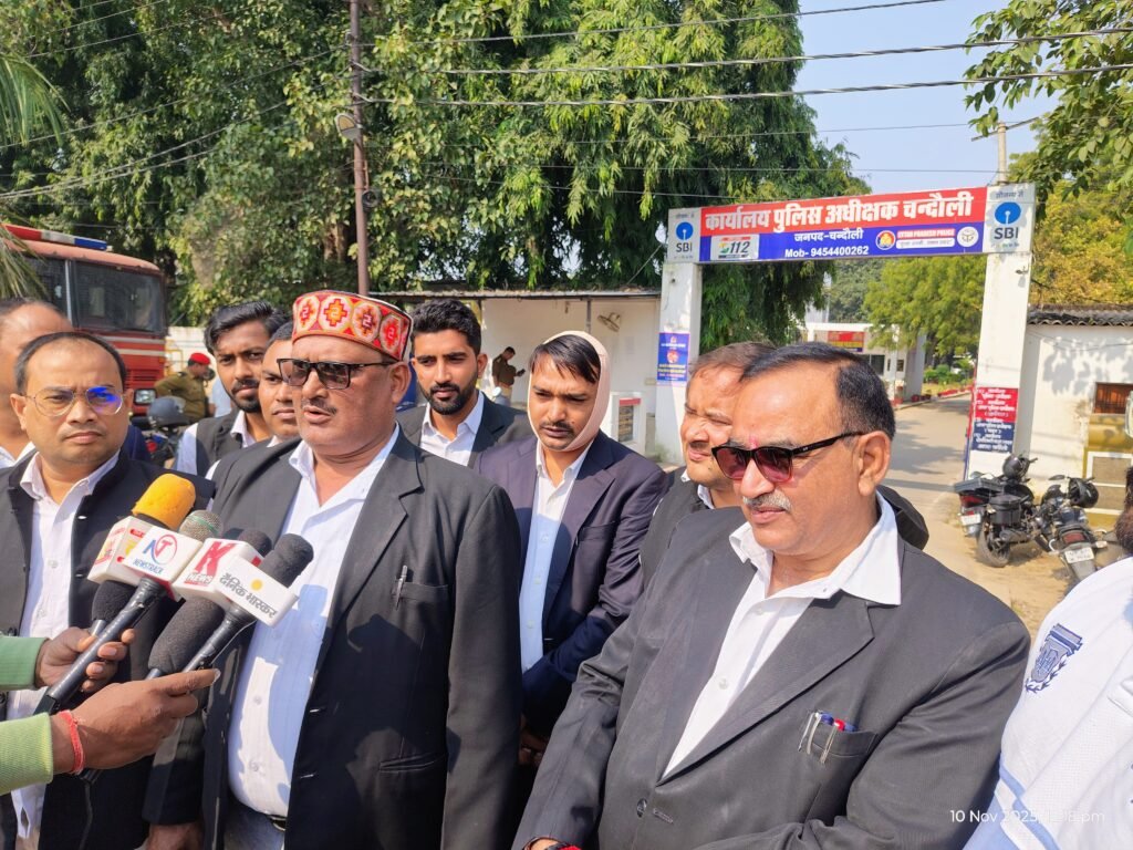 Chandauli news : शनिवार के दिन सदर कोतवाली के मठवाली गली में रात्रि को चार पहिया सवार कुछ लोगों ने अधिवक्ता को जमकर मारपीट कर घायल कर दिया। लेकिन गिरफ्तारी नही हुई। जिससे आक्रोशित अधिवक्ता सोमवार को सिविल बार अध्यक्ष के नेतृत्व में पुलिस अधीक्षक से मिलकर गिरफ्तारी के लिए दबाव बनाया। एसपी भी अधिवक्ता का प्रकरण होने गंभीर दिखे। इंस्पेक्टर को एस प्रकरण में गंभीरता दिखाते हुए त्वरित कार्यवाही करने के लिए कहा।