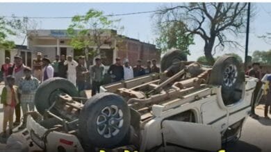 मोटरसाइकिल को टक्कर मार पलट गई बोलेरो, आधा दर्जन घायल