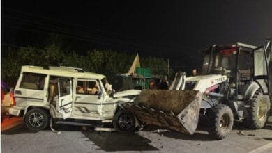 अंत्येष्टि से वापस आ रहे बोलेरो सवारों ने नगर पंचायत के जेसीबी में मारी टक्कर, बोलेरो के उड़ गए परखच्चे